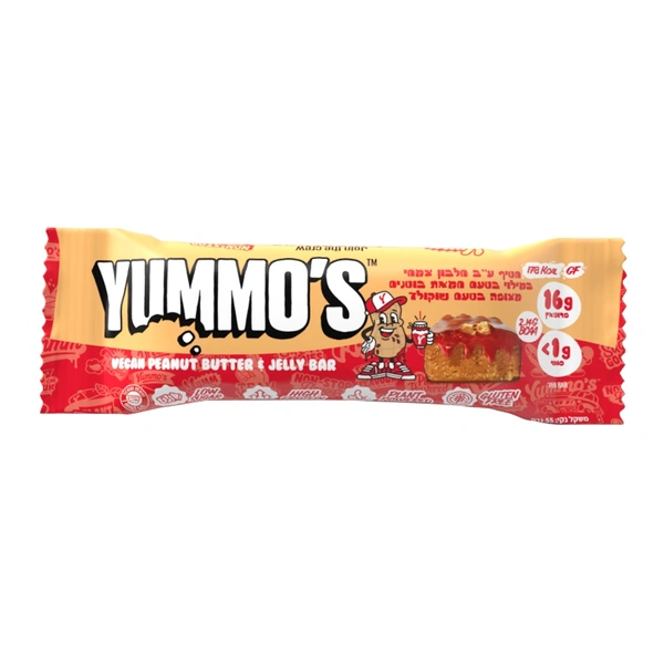 חטיף חלבון טבעוני ללא גלוטן בטעם חמאת בוטנים וג'לי יאמוס