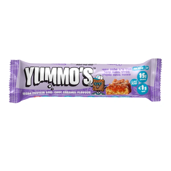 חטיף חלבון טבעוני ללא גלוטן בטעם שוקולד קרמל יאמוס