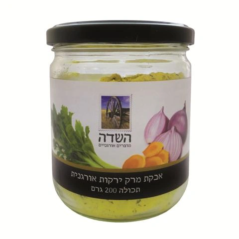 רכיבים: מלטודקסטרין תירס אורגני, מלח, אבקת בצל אורגני, שמן חמניות אורגני מכבישה קרה, סלרי אורגני, אגוז מוסקט אורגני, כורכום אורגני, פטרוזיליה אורגניות, פלפל לבן אורגנית. סה"כ ירקות 16.7%.