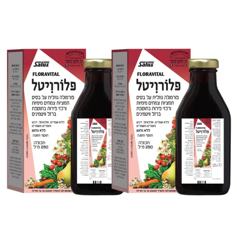 זוג פלורויטל (תערובת תמציות צמחים ורכזי פירות בתוספת ברזל ללא שמרים, אלכוהול, דבש וחומרים משמרים ללא גלוטן) 250 מ"ל – סאלוס