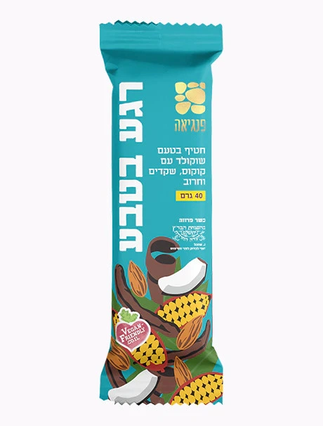 חטיף בטעם שוקולד עם קוקוס, שקדים וחרוב של המותג פנגיאה רגע בטבע הוא חטיף טעים ומזין, המשלב מרקם פריך של שקדים וקוקוס עם טעם מתוק של שוקולד וחרובים. הוא מהווה נשנוש אידיאלי ואנרגטי לכל שעות היום.