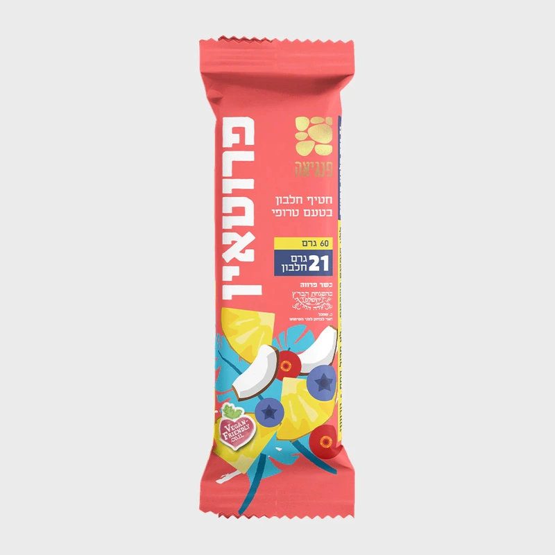 טעם ייחודי: הטעם הטרופי מבדיל אותו מחטיפי החלבון הקלאסיים ומוסיף חווית אכילה מהנה.