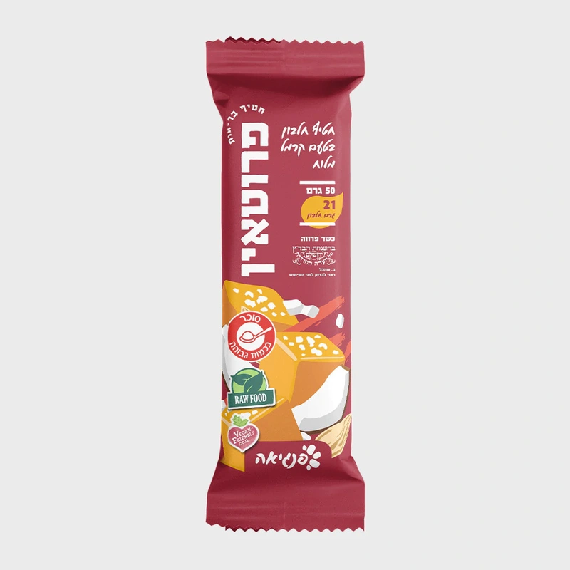 חטיף חלבון בטעם קרמל מלוח של המותג פנגיאה הוא חטיף אנרגיה עשיר בחלבון, המשלב את הטעם המתוק של קרמל עם נגיעת מליחות. הוא נועד לספק לגוף מנת חלבון איכותית ומהירה ומשמש כנשנוש מזין.