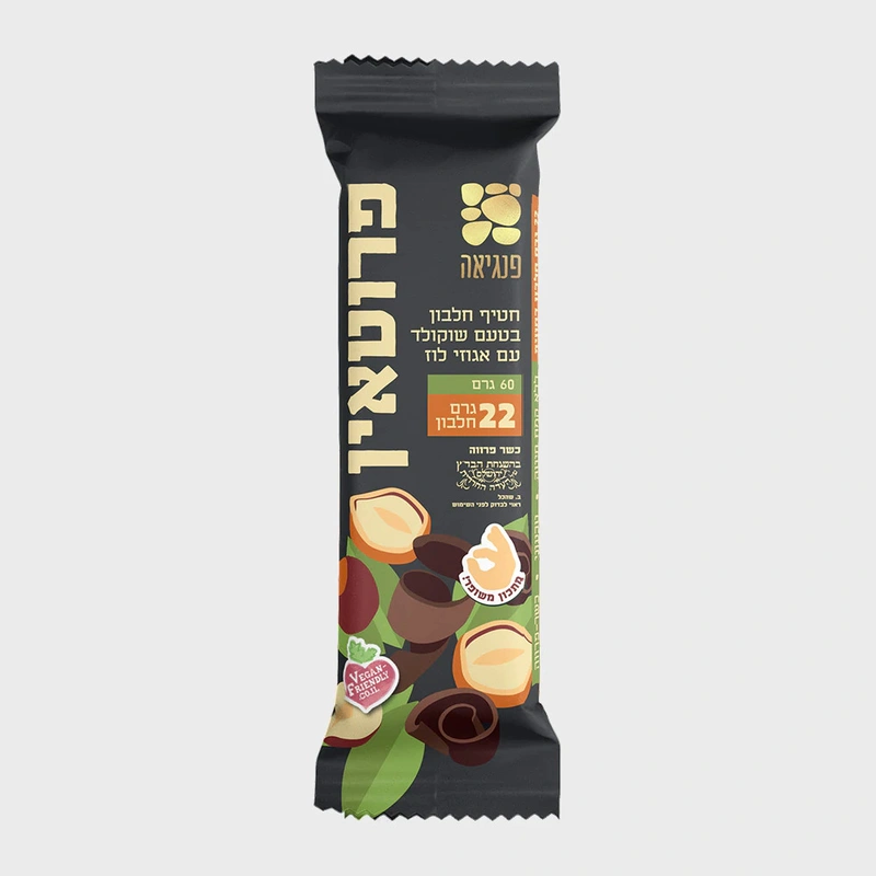 חטיף חלבון בטעם שוקולד עם אגוז לוז של המותג פנגיאה הוא חטיף אנרגיה עשיר בחלבון, המשלב את הטעמים הקלאסיים של שוקולד ואגוזי לוז. הוא מיועד לספק לגוף מנת חלבון איכותית ומהירה.