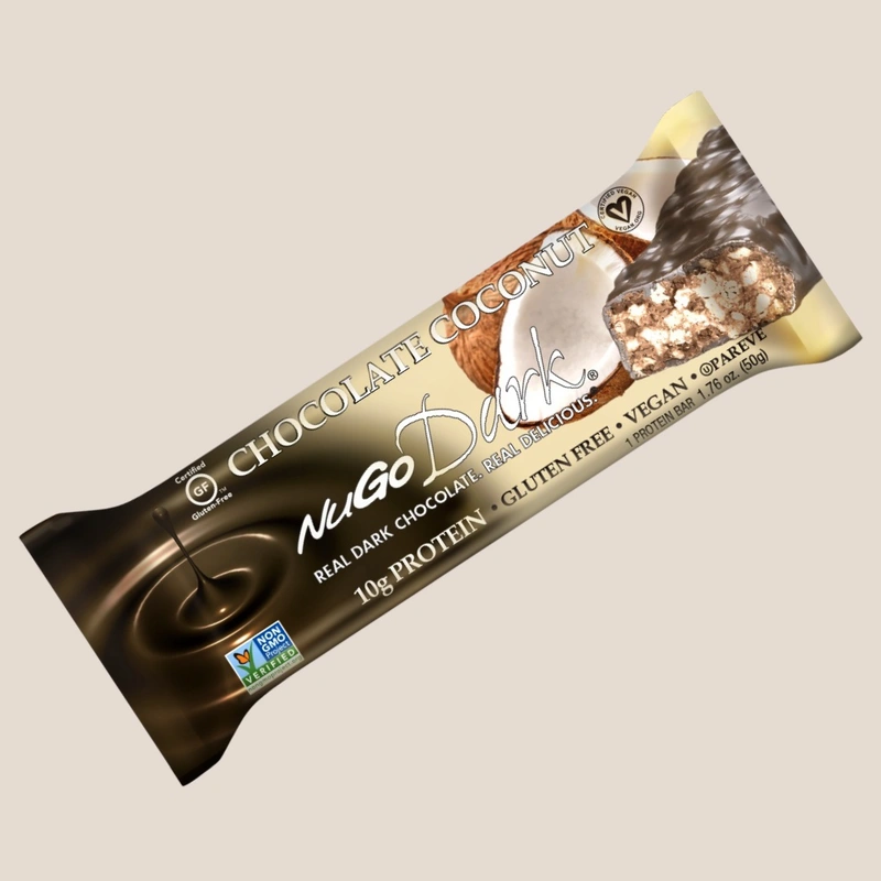 חטיף חלבון בטעם קוקוס של המותג NuGo הוא חטיף חלבון טבעוני, המיועד כתחליף לארוחה קלה או כנשנוש מזין. החטיף בעל טעם עשיר של קוקוס, בציפוי שוקולד מריר, והוא מהווה פתרון נוח וזמין למקור אנרגיה.
