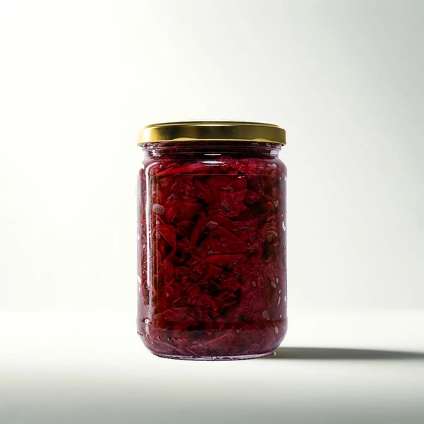 כרוב סגול מובחר שעבר תהליך התססה לקטית מסורתית. התהליך משמר את הפריכות של הכרוב ומעניק לו טעם חמוץ-מלוח עמוק. צבעו הסגול המרהיב הופך אותו לתוספת ויזואלית ובריאותית מצוינת לכל ארוחה. המוצר נשמר בקירור ואינו מכיל חומץ.