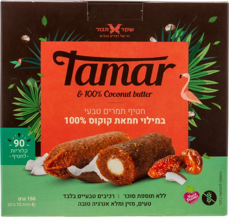 מרכיבים טבעיים: החטיפים עשויים ממרכיבים טבעיים בלבד: תמרים וחמאת קוקוס, ללא תוספת סוכר או חומרים משמרים.