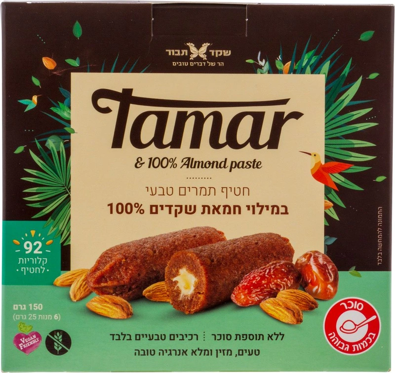 מארז חטיפי תמר במילוי חמאת שקדים של שקד תבור הוא מארז של חטיפי אנרגיה קטנים, המורכבים מתמר מג'הול טבעי במילוי חמאת שקדים איכותית. החטיפים מהווים נשנוש טעים ובריא.
