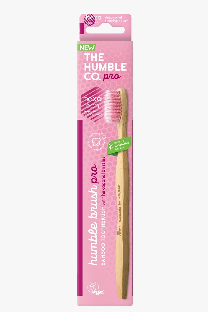 מברשת השיניים פרו ורוד של המותג האמבל בראש (Humble Brush) היא מברשת שיניים אקולוגית, שתוכננה לשלב יעילות ניקוי עם שמירה על הסביבה. היא חלק מסדרת ה-PRO החדשה של החברה, הכוללת שיפורים ייחודיים במבנה הסיבים.