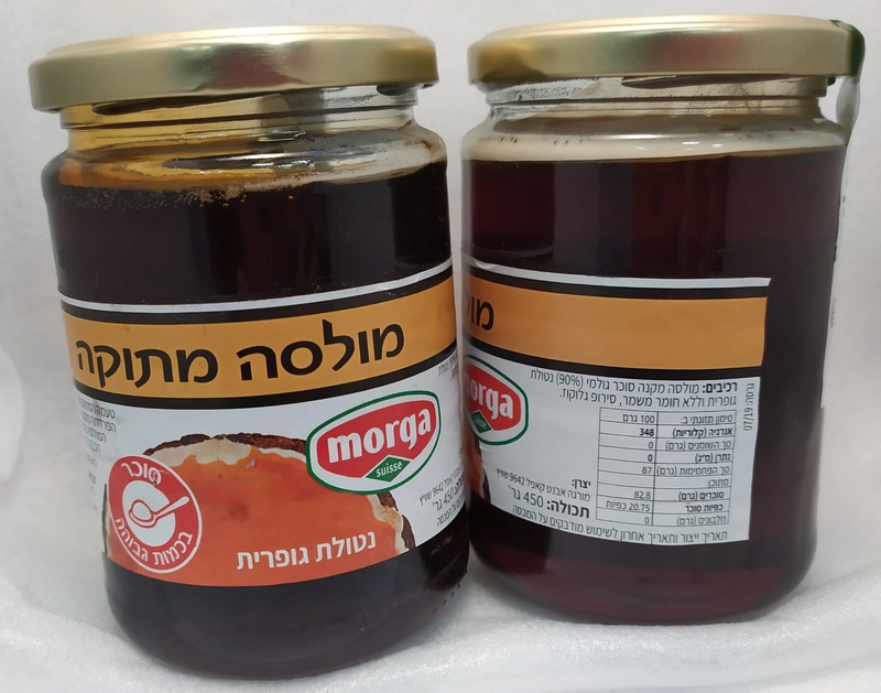 רכיבים: מולסה מקנה סוכר גולמי 90%, נטולת גופרית וללא חומר משמר, סירופ גלוקוז.