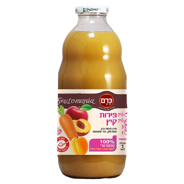 מיץ פירות קיץ תפוח, אפרסק, גזר ומשמש טבעי כרם
