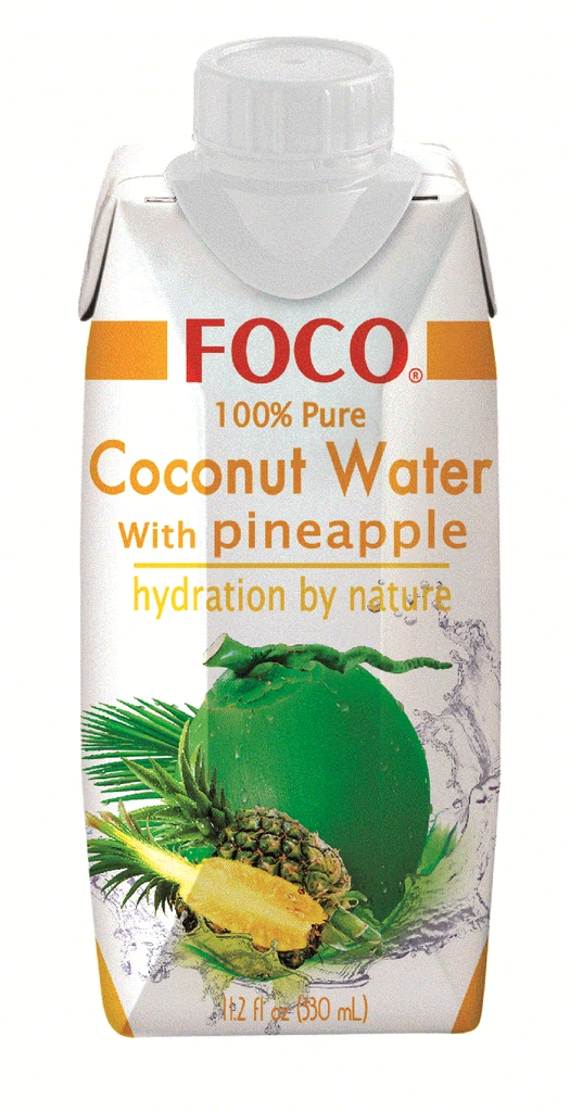 רכיבים: מי קוקוס 94.9%, מיץ אננס 5%, מווסת חומציות (ויטמין C – חומצה אססקורבית).