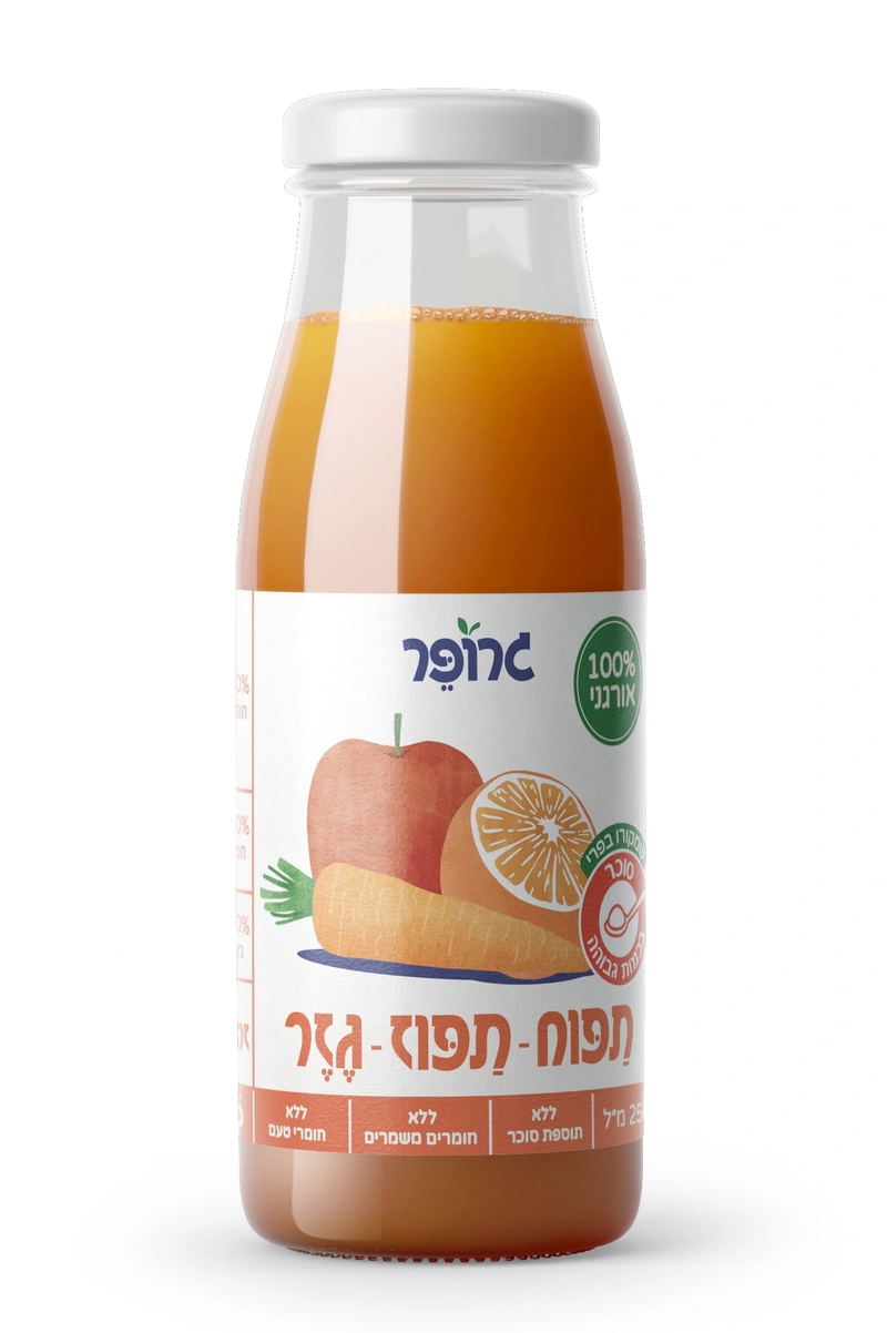 מיץ אורגני תפוח-גזר-תפוז 250 מ"ל גרופר