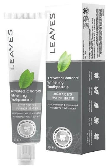 משחת שיניים עם פחם פעיל להלבנה והסרת כתמי קפה ועישון Activated Charcoal מבית LEAVES.