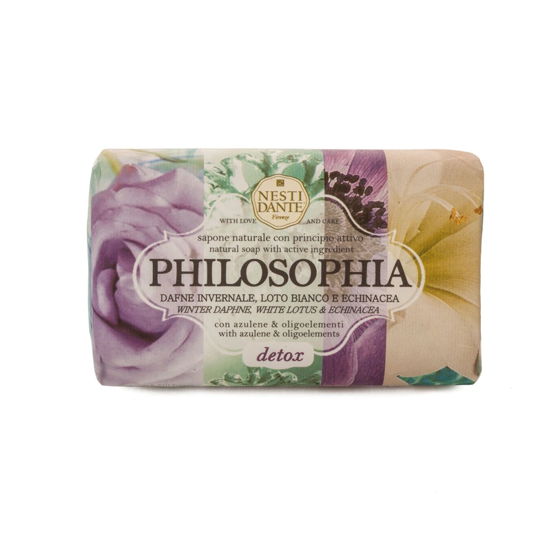 סבון "פילוסופיה דיטוקס לוטוס אכינציאה" של נסטי הוא סבון מוצק המכיל תמציות לוטוס, אכינצאה, אזולין ואוליגולידים.