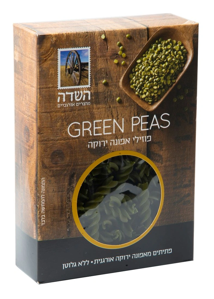 פוזילי (Fusilli) העשוי כולו מ-100% קמח אפונה ירוקה אורגנית. הפסטה מהווה תחליף אידיאלי לפסטה מסורתית על בסיס חיטה, והיא בעלת יתרון תזונתי משמעותי: היא עשירה במיוחד בחלבון מהצומח (כ-22 גרם ל-100 גרם) וסיבים תזונתיים. הפסטה מבושלת במהירות (כ-7 דקות) ומעניקה למנה טעם עדין האופייני לקטניות.