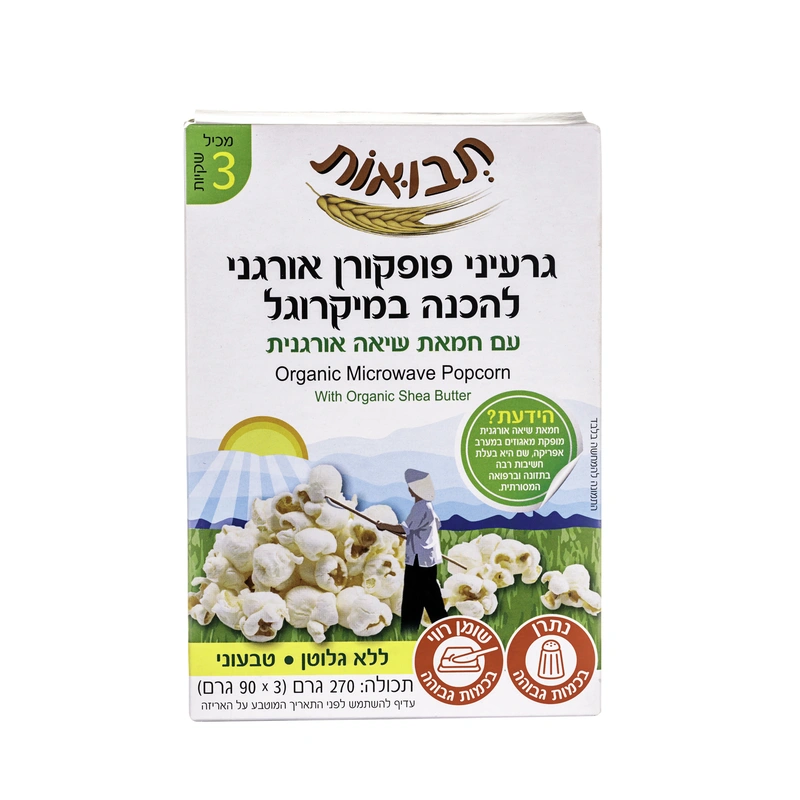 פופקורן אורגני בחמאת שיאה למיקרו תבואות