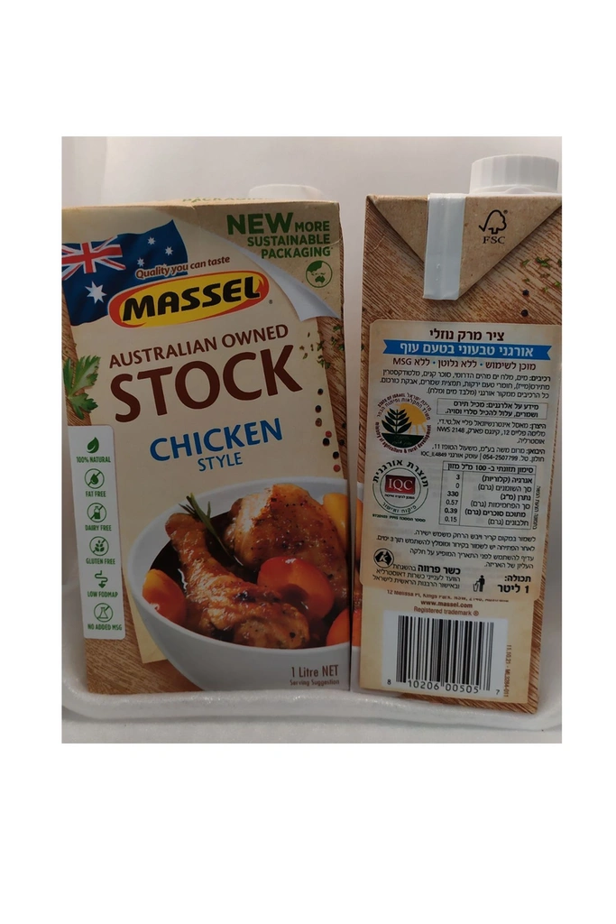 ציר מרק נוזלי אורגני טבעוני בטעם עוף ללא גלוטן 1 ל' מסל