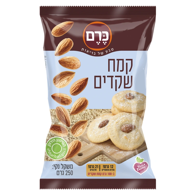 קמח שקדים הוא חומר גלם פופולרי במיוחד בעולם האפייה והבישול, ובפרט בתזונה ללא גלוטן ודלת פחמימות. הוא מיוצר על ידי טחינה דקה של שקדים מולבנים (שקדים שהוסרה מהם הקליפה החומה החיצונית). תהליך זה מעניק לקמח צבע בהיר, לבן-קרמי, ומרקם עדין ואוורירי, הדומה לקמח חיטה, אך עם טעם אגוזי עדין ומעודן של שקדים.