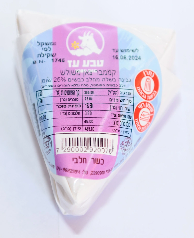רכיבים עיקריים (משוער): חלב עיזים מפוסטר, מלח, עובש מסוג פניצליום קנדידיום.