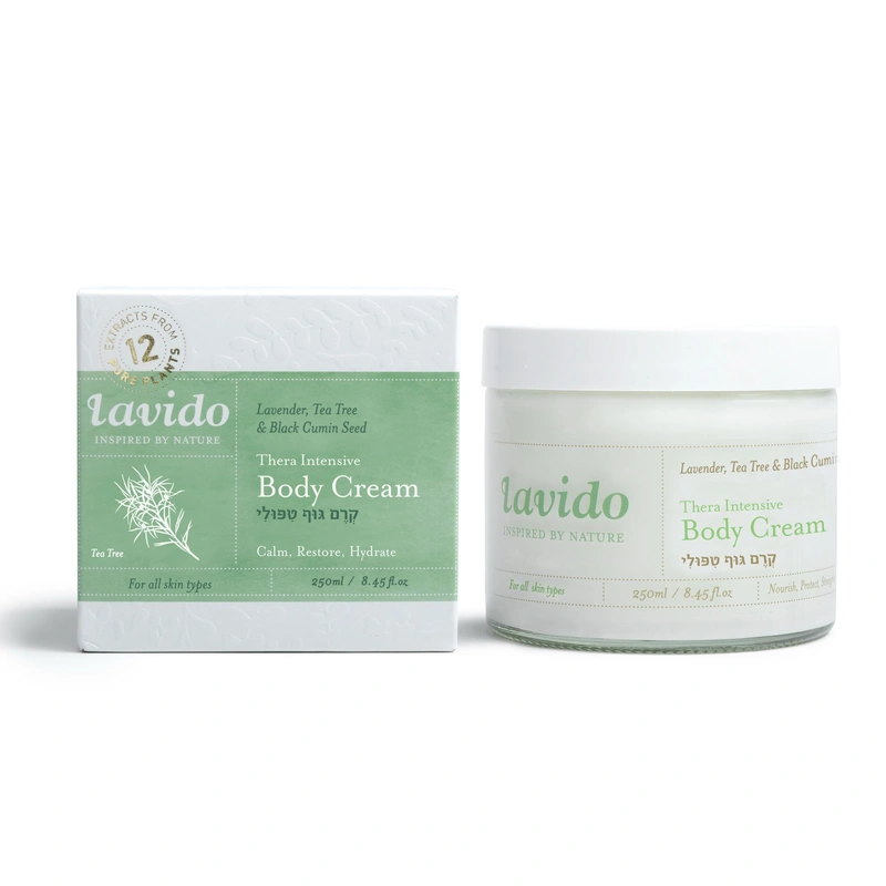 קרם גוף טיפולי של Lavido (לבידו) הוא קרם המיועד להזנה אינטנסיבית של העור, במיוחד לעור יבש ומגורה. הוא מבוסס על פורמולה ייחודית של שמנים אורגניים, ומטרתו להקל על עור יבש ומגורה, להגן, לשחזר ולאזן את הלחות בעור.