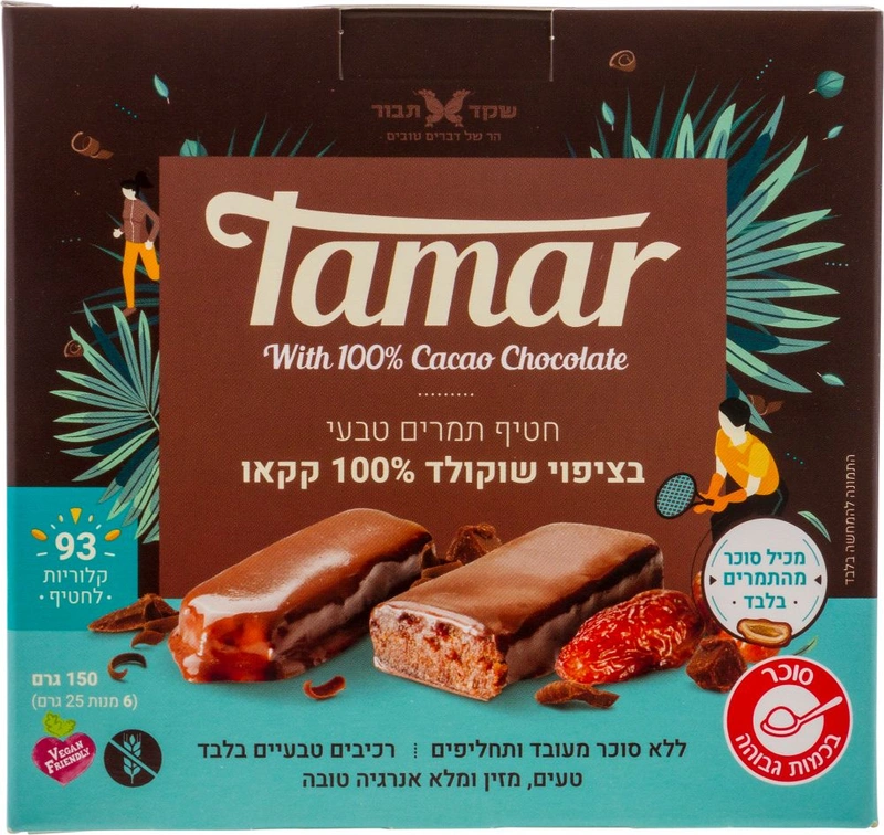 מארז חטיפי תמר מצופה שוקולד 100% קקאו שקד תבור