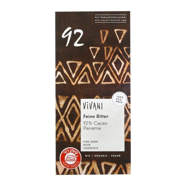 אחוזי קקאו גבוהים במיוחד: השוקולד מכיל 92% מוצקי קקאו, מה שמעניק לו טעם מריר, עמוק ודומיננטי. אחוזי קקאו גבוהים אלה אופייניים לשוקולד איכותי, והם מכילים כמות גדולה יותר של נוגדי חמצון.