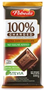 שוקולד מריר 72% קקאו עם סטיביה של המותג צ'ארג'ד (Charged) הוא שוקולד מריר ללא תוספת סוכר, המיועד לחובבי שוקולד מריר המבקשים להפחית את צריכת הסוכר.