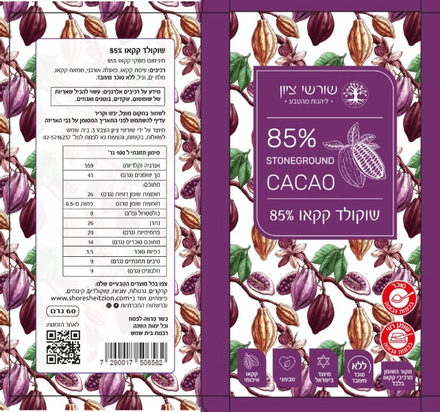 שוקולד קקאו 85% שורשי ציון