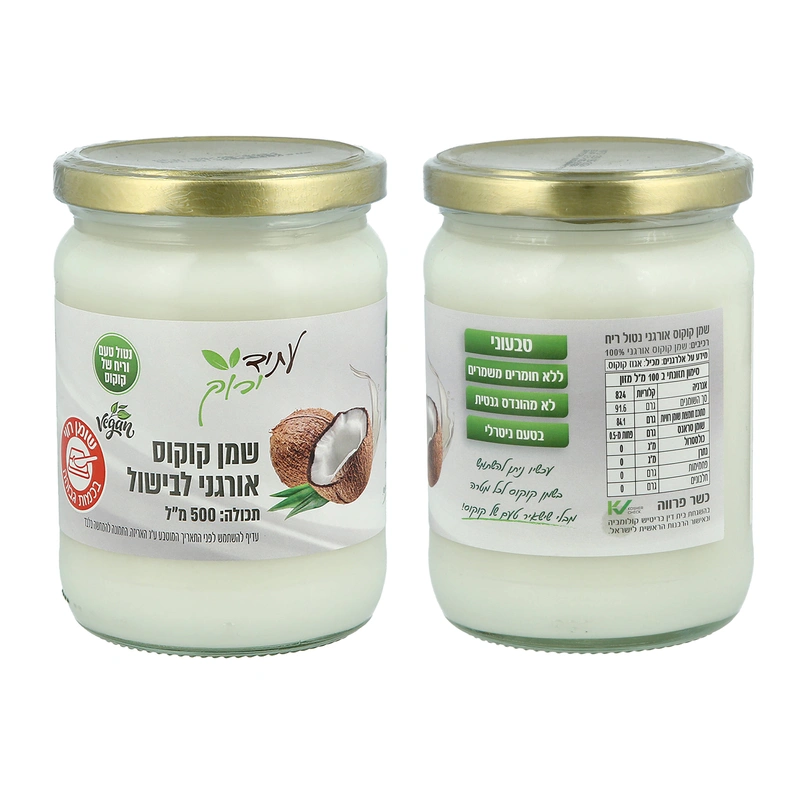 שמן קוקוס אורגני לבישול ללא ריח 500 מ"ל עתיד ירוק