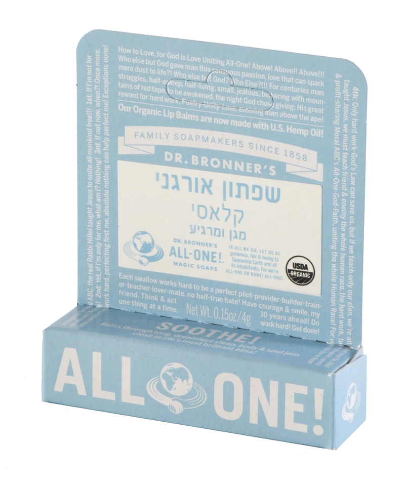 השפתונים האורגניים של ד"ר ברונר, מיוצרים עם שעוות דבורים אורגנית ומספקים שכבת הגנה מפני פגעי הסביבה!
