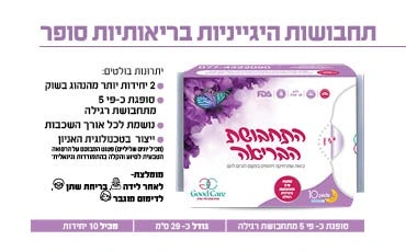 ספיגה גבוהה: סופגות פי 5 מתחבושת רגילה, מתאימות במיוחד לימי וסת חזקים.